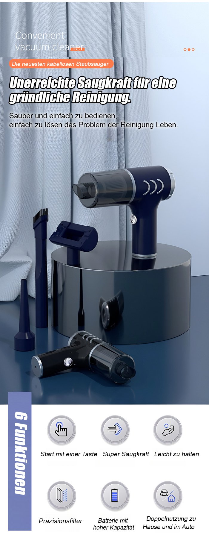 Multifunktionaler kabelloser Handstaubsauger für das Auto